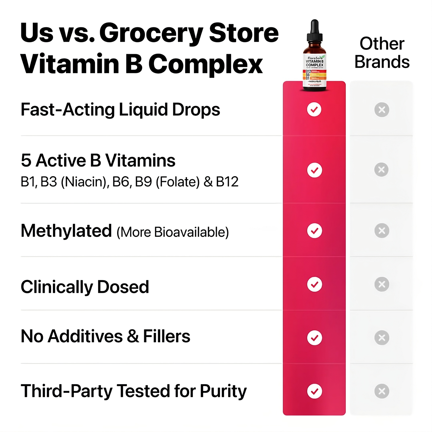 Unlike most B-complex supplements that don’t get absorbed at all, ours are made with clinically dosed, highly bioavailable forms of each B vitamin. No megadosing, no fillers—just the right amounts for maximum absorption and quicker benefits you can actually feel.